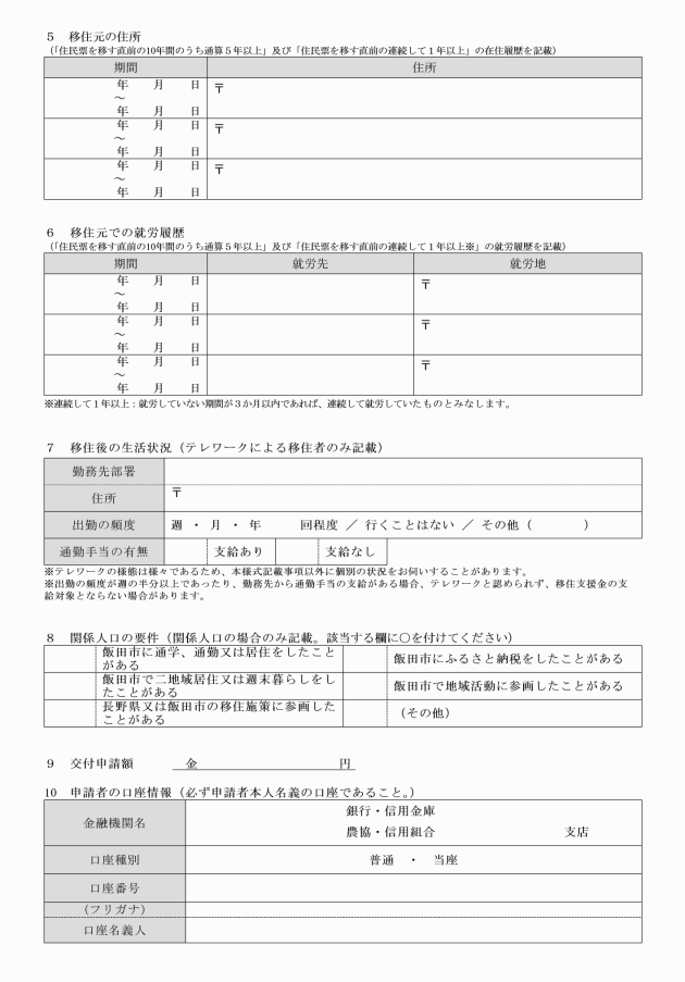 (5) 南信州地域外に転出し、又は移住支援金の要件を満たす職を辞した日までの期間が、申請日から3年以上5年以内である場合 交付を受けた移住支援金の2分の1の額