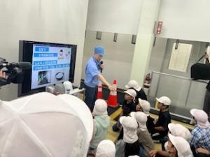 工場見学では、企画、材料から製品ができ、発送までの過程について、担当者から説明を受けながら生産ラインを見学しました。工場の方から「ものづくりは楽しい。自分たちが考えたことができたり、使ってくれているのはうれしい。やりがいを感じる。」というお話を聞いて、児童は「地元にこんなに広くて、身近なものを作っている工場があるのを知ることができてよかった。」と目を輝かせながら感想を述べていました。